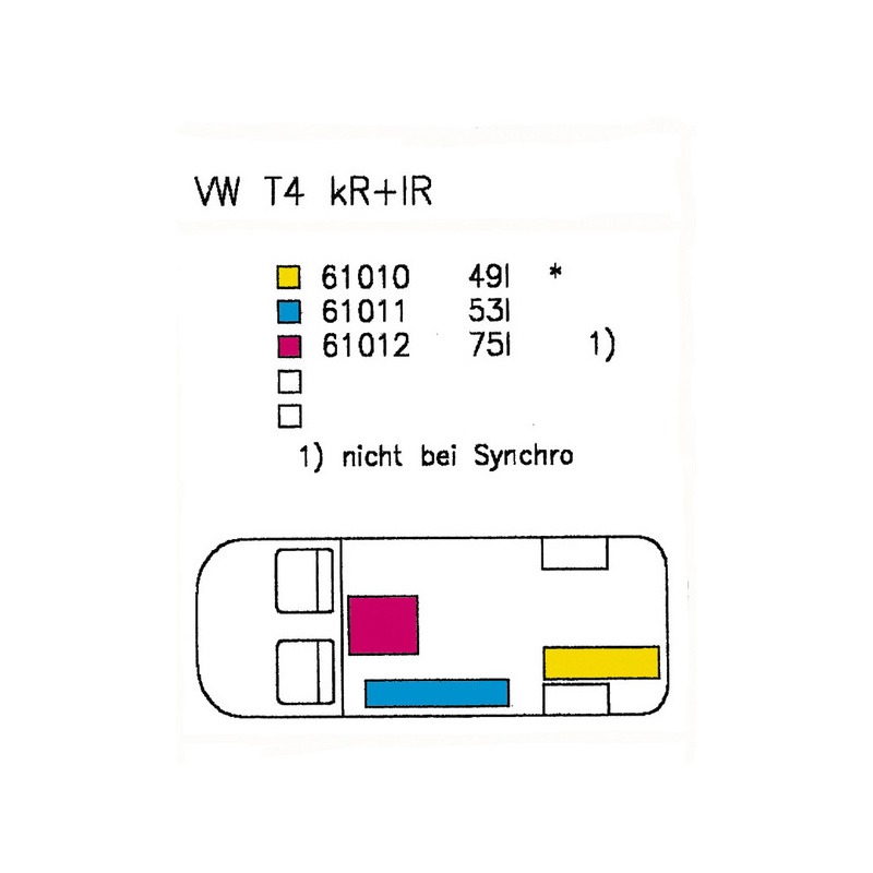 Capacitate de aproximativ 32 L. Se pot monta 2 rezervoare unul în spatele celuilalt, un rezervor ca rezervor de apă proaspătă și unul ca rezervor de apă uzată, cu deschidere standard pentru curățare.